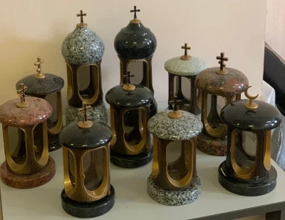 Лампады комбинированные гранитно-металлические в ассортименте из гранитов габбро-диабаз, мансуровский, дымовский, лезниковский, металлические вставки в расцветках: серебро, бронза, черный. В наличии и под заказ.
